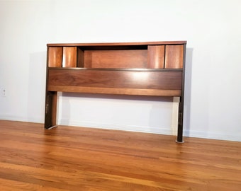 Vintage Mid Century Modern Walnut Utility Bookcase Headboard Double Full Bed Bookcase Headboard Vintage Bookcase Modern Headboard