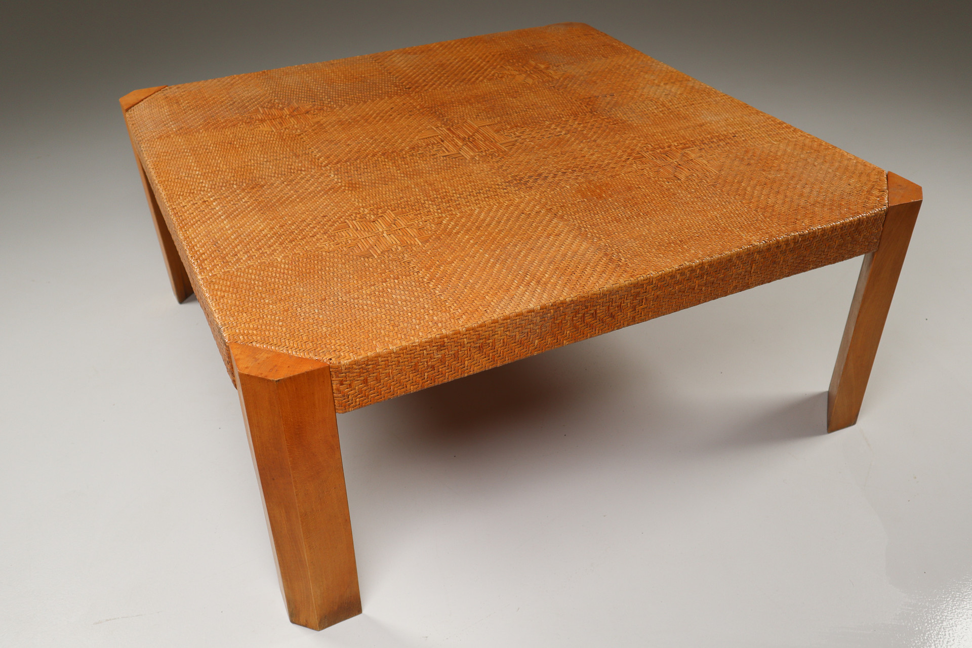 Modern Monumental Rattan And Wood Coffee Table Mid 20th Century