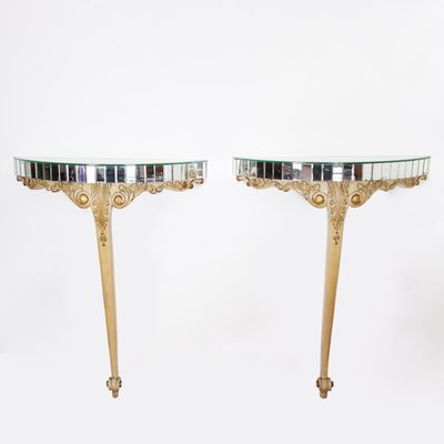 French Brass Mirror Console Table 1960s Set Of 2 For Sale At