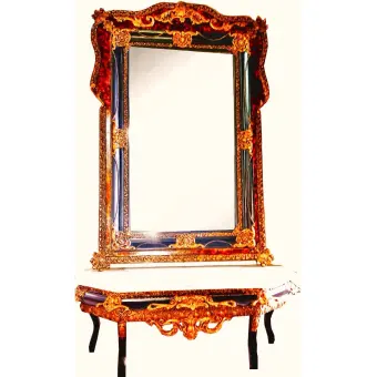 Wooden Carved Hand Crafted Designer Console And Mirror Set By