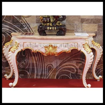 Antique Gold Color Glass Top Luxury Console Table Set Hallway