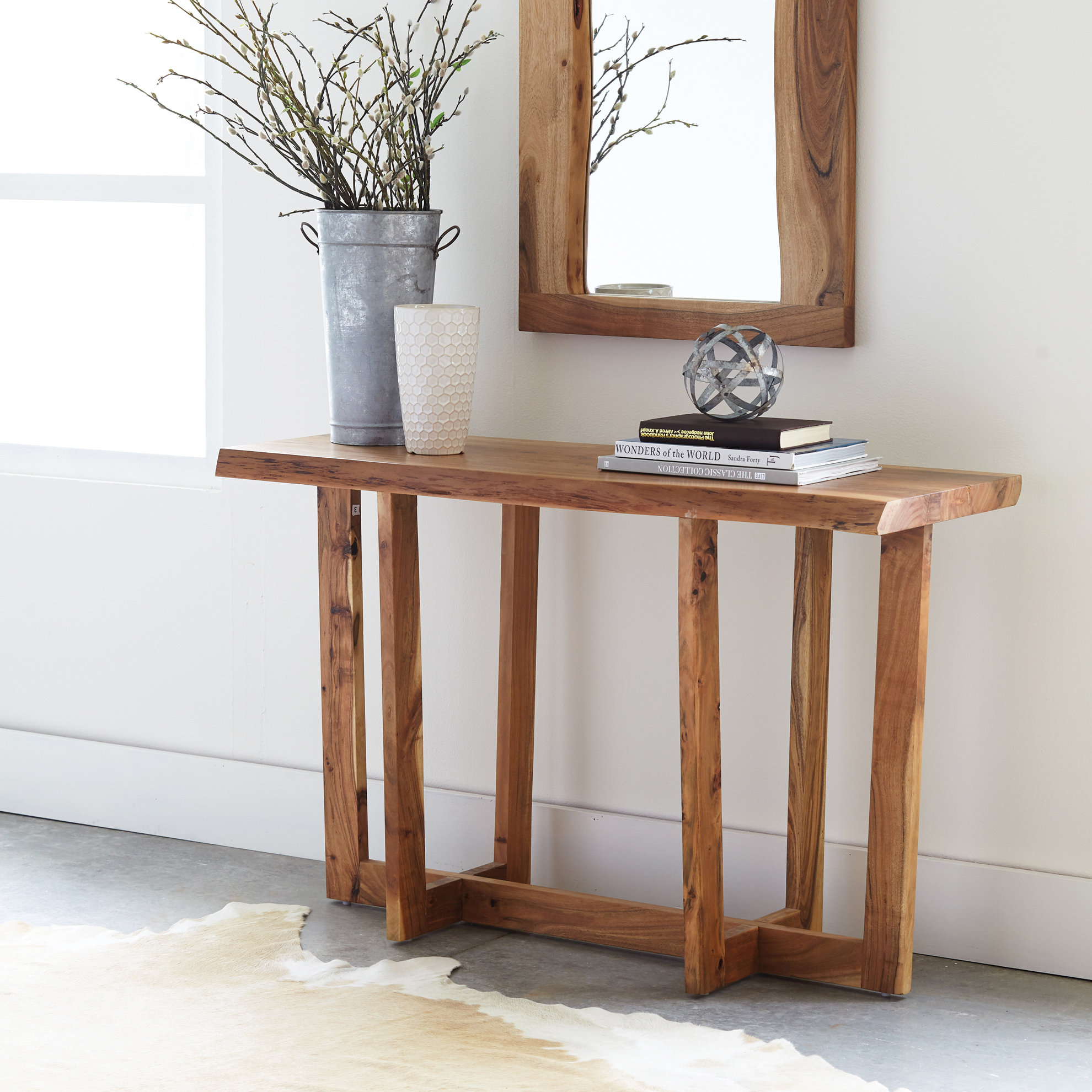 Natural Edge Acacia Wood Steel Hall Console Table