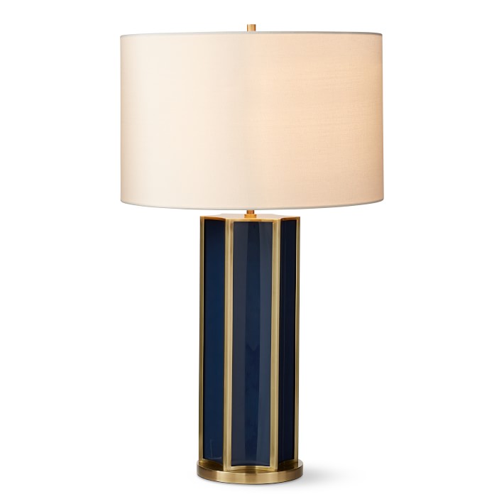 Fluted Colored Glass Navy Table Lamp Williams Sonoma