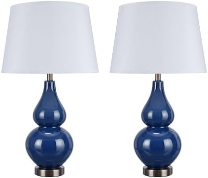 Transitional Double Gourd Glass Table Lamp Navy Set Of 2 By